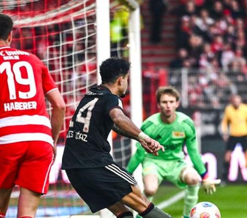 德甲联赛第10轮,拜仁和柏林联盟的比赛最终打成2-2平,德甲豪门无缘继续连胜,16连胜的纪录被终结,新赛季的德甲9连胜也无缘打破瓜迪奥拉保持的德甲10连胜纪录。当然,拜仁如今依然保持不败,是联赛唯一不败的球队,领跑德甲积分榜。而这场比赛当中,除了凯恩最后时刻的头球绝杀之外,拜仁边锋迪亚斯在上半场打进的0角度进球也非常精彩,甚至可以参与到普斯卡什的竞争当中。